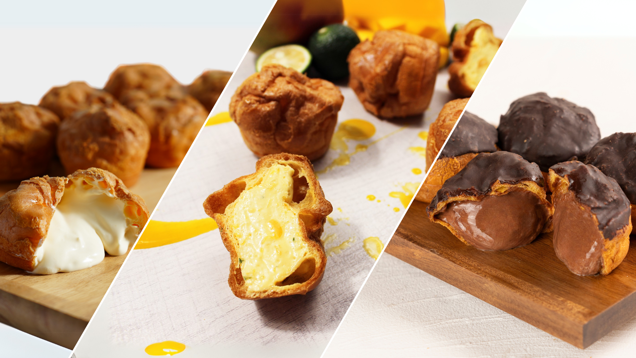 夏季限定新商品「青ゆずとマンゴーのシュークリーム」と、