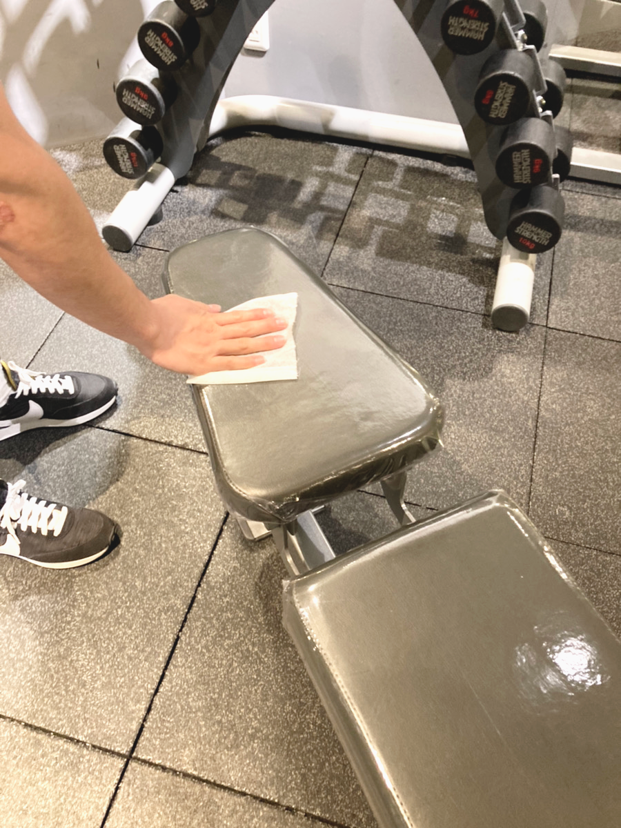 トレーニングを衛生面的にも安心して行ないたいので、トレーニングマシーンの肌が触れる部分にビニールシートを被せていただきたいです。
