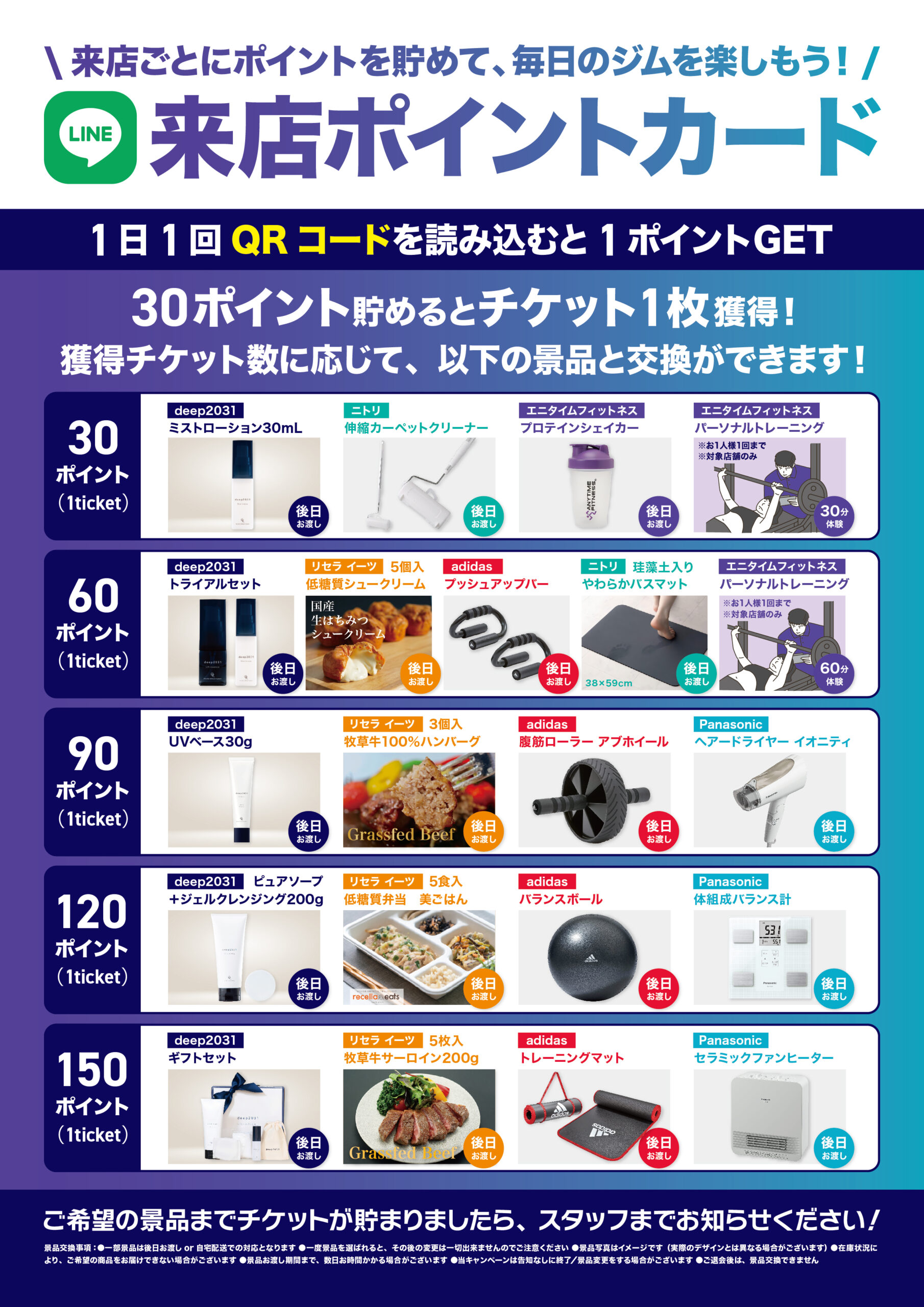 来店毎にポイントを貯めて景品と交換できる「LINEの来店ポイントカード」。 第1弾が終了し、多くのお客様よりご要望をいただいたため、景品数を大幅に増やし第2弾を2月17日より開始いたしました。