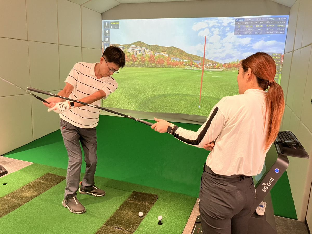 ゴルフシミュレーターの機能(軌道の目視、スイングの数値等)を活用したプロからの直接指導によって、スイングの改善や様々なゴルフのお悩みを解決いたします。